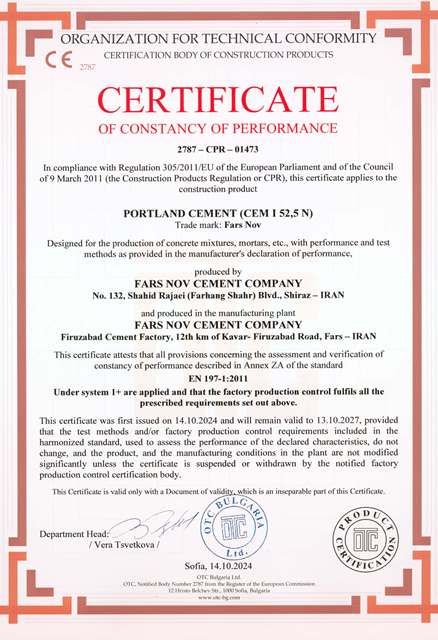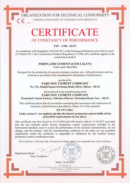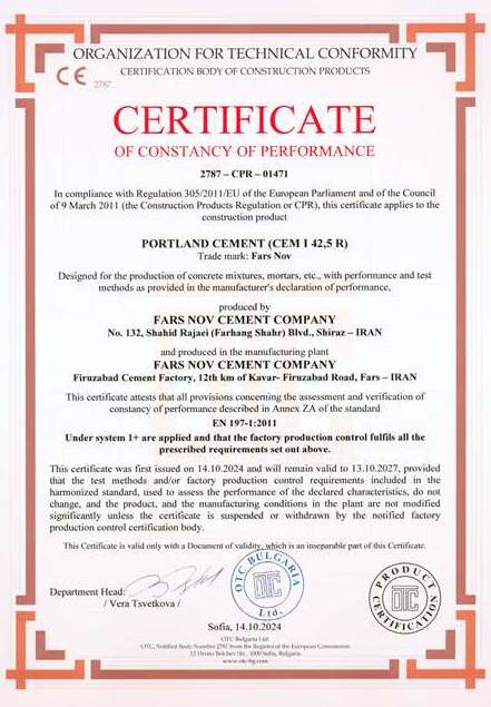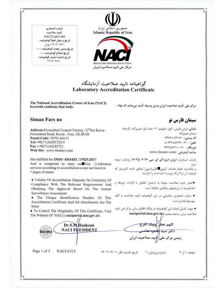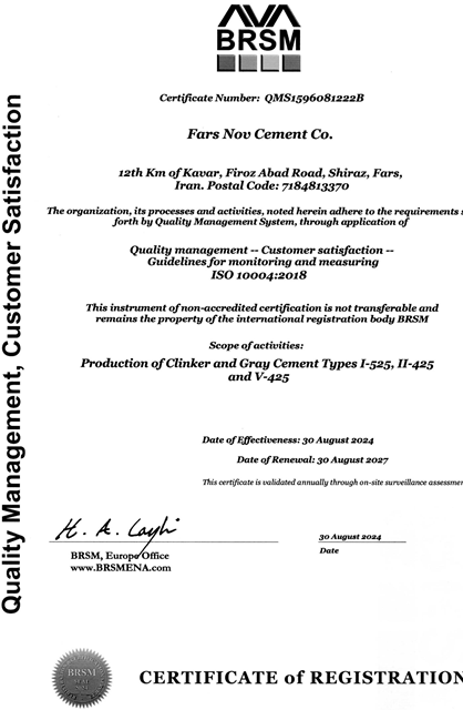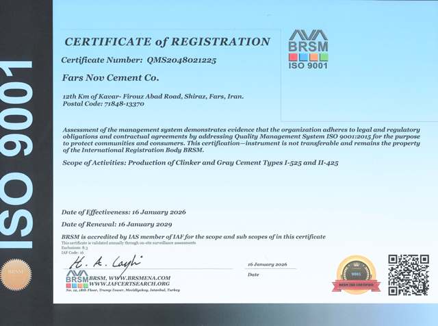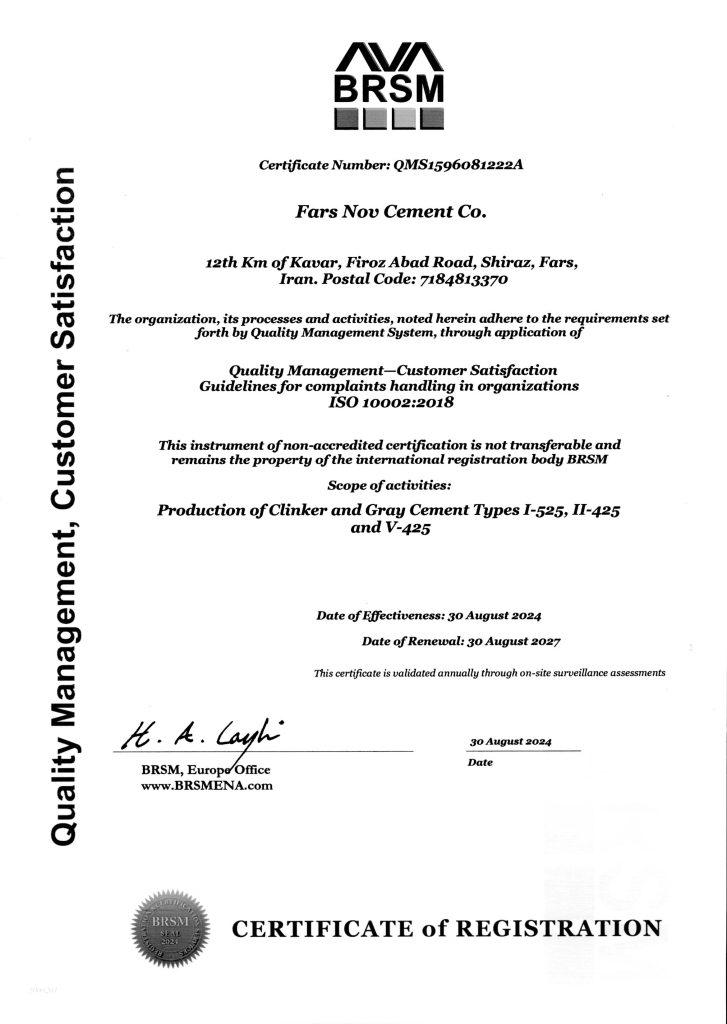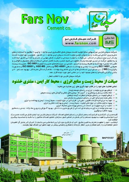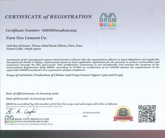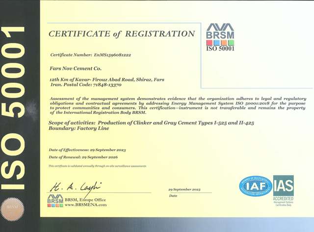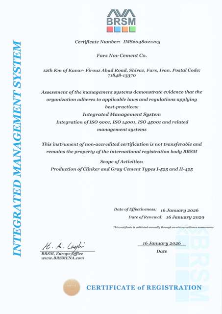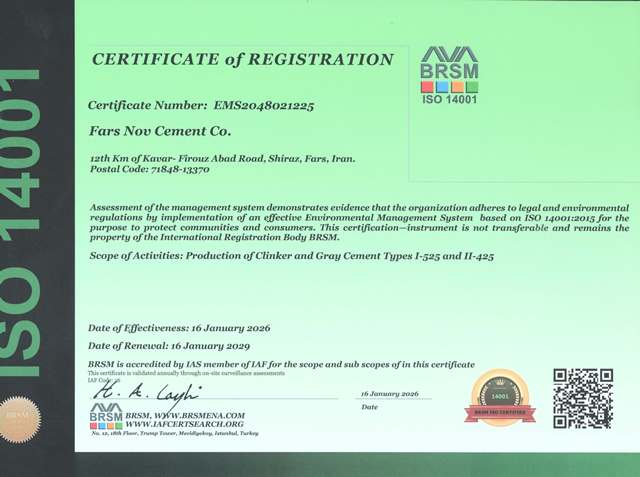 گواهینامه مدیریت زیست‌محیطی که نشان‌دهنده توجه کارخانه به مسائل زیست‌محیطی و پایداری در فرآیندهای تولید است.