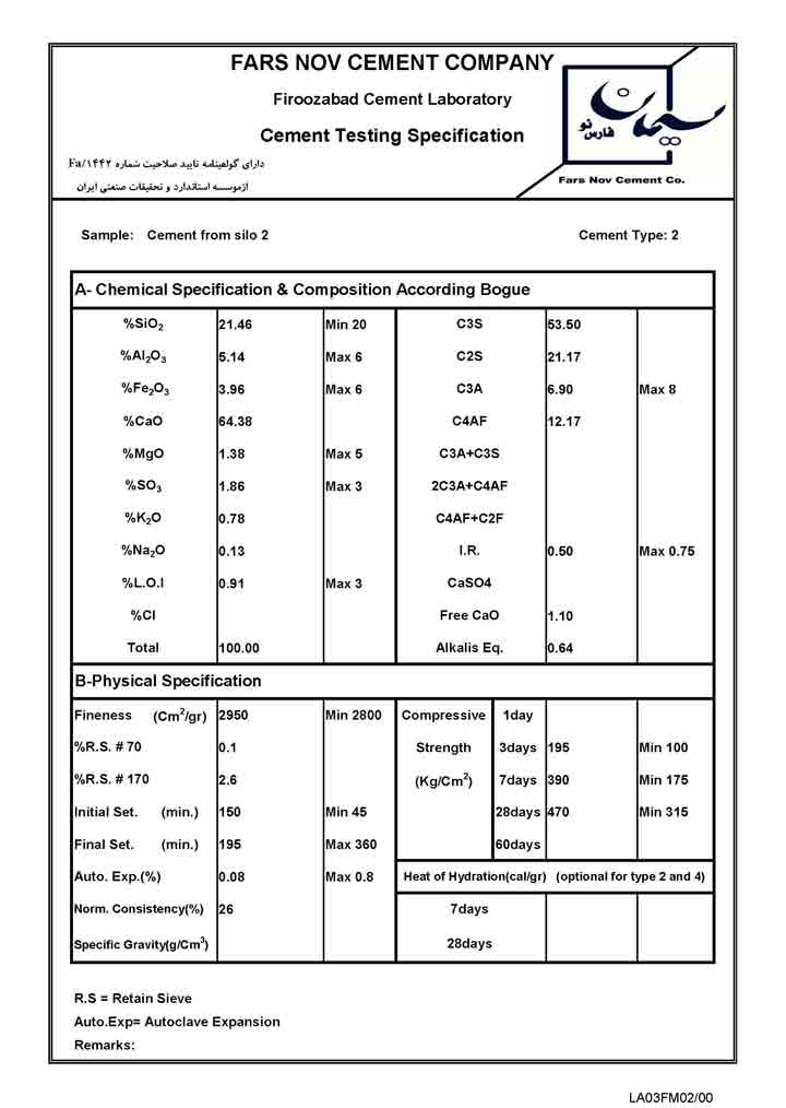 نوع سیمان: سیمان پرتلند تیپ ۲ (مقاوم در برابر سولفات متوسط)