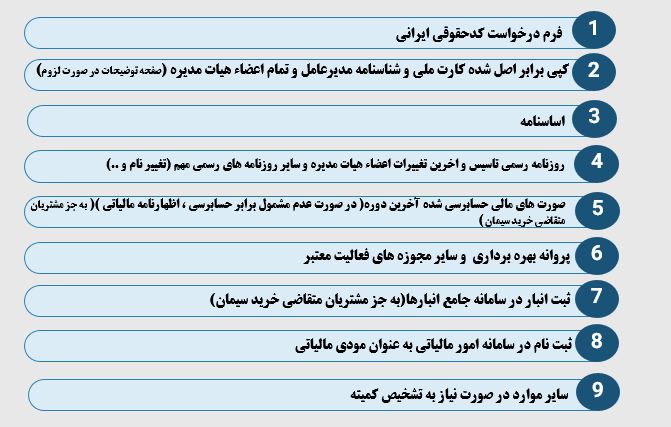 مدارك مورد نياز جهت درخواست كد